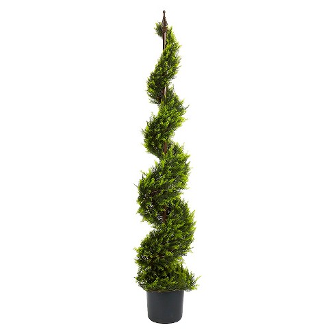 At target find the perfect tree and all the decorations you need. Look through a wide range of artificial christmas trees with a variety of types to suit your taste. 5ft double pond cypress spiral topiary artificial tree in black planter nearly natural.